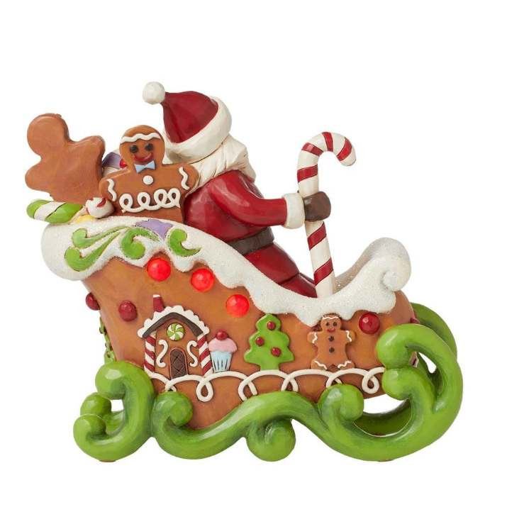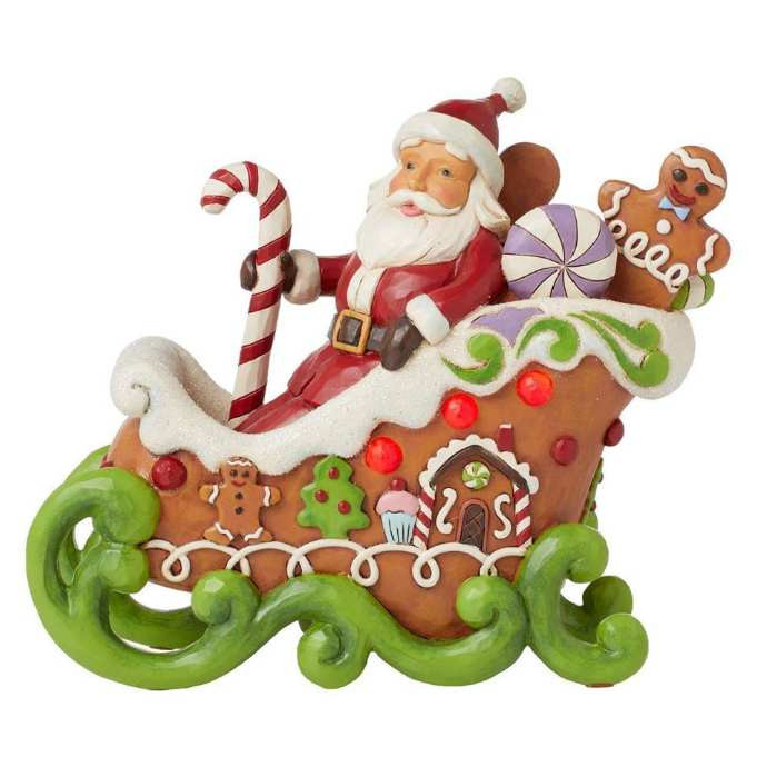Jim Shore Slitta di pan di zenzero con babbo natale e led