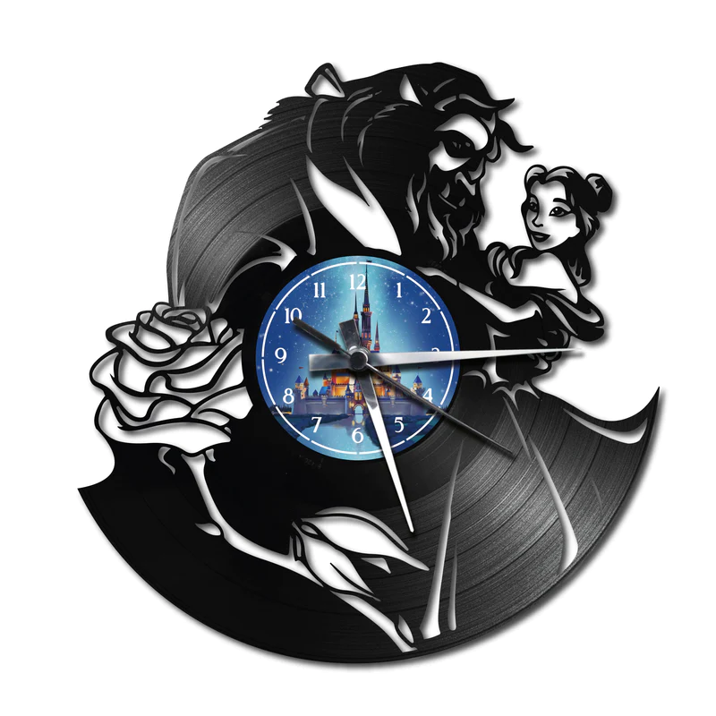 Orologio da Parete con Disco Vinile Lavorato a Mano La Bella e La Bestia